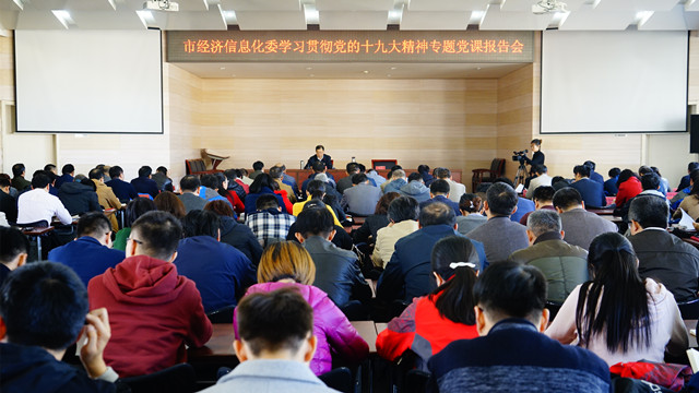 11月3日下午,北京市经济和信息化委员会召开学习宣传贯彻党的十九大精神专题党课报告会。市经信委领导班子成员,机关全体党员、干部及直属单位领导班子成员、支部委员共300余人参加报告会。市经信委党组书记、主任张伯旭做专题辅导报告,委党组成员、机关党委书记刘京辉主持报告会。