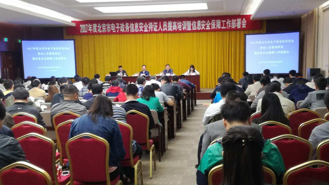 为深入贯彻党的十八届六中全会精神,贯彻落实习近平总书记系列重要讲话精神以及网络空间治理新理念、新思想、新战略,全面落实《网络安全法》,并在重大活动和重要会议期间做好电子政务网络安全保障工作,北京市经济信息化委于2017年4月19至21日在北京会议中心组织召开了2017年度电子政务信息安全人员持证上岗培训暨信息安全保障工作部署会。