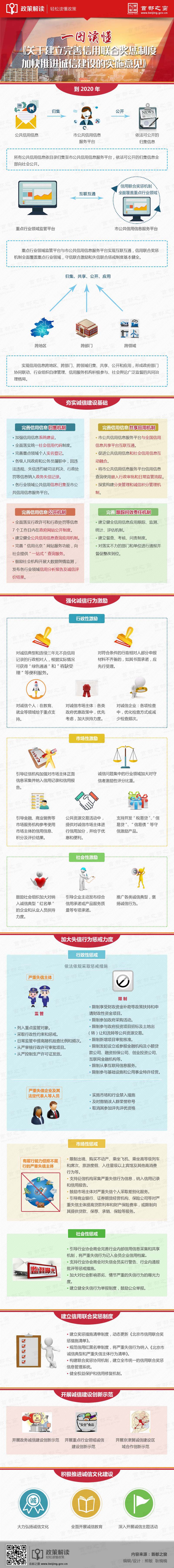 近日,市政府印发了《关于建立完善信用联合奖惩制度加快推进诚信建设的实施意见》(京政发〔2017〕15号)(以下简称《实施意见》),为便于理解《实施意见》的相关内容,首都之窗制作了图解,解读《实施意见》的核心内容。