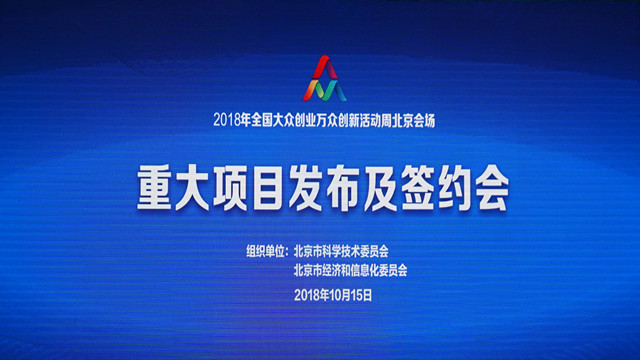 2018年全国大众创业万众创新活动周北京会场“重大项目发布及签约”活动在中关村国家自主创新示范区展示中心举行。市科委发布了全国科技创新中心重大创新成果,市经济信息化委介绍了签约的重大项目情况。二代基因测序仪及配套诊断试剂的研发制造项目等10个项目现场签约。各区科技、经信主管部门相关负责同志,高校院所代表、企业代表、投资机构代表、孵化机构代表和媒体代表参加本次活动。