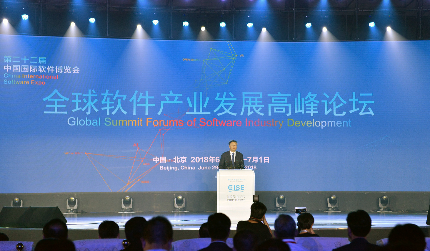 2018年6月29日,由工业和信息化部、北京市人民政府共同主办的第二十二届中国国际软件博览会(以下简称“2018软博会”)在北京展览馆举行。工业和信息化部部长苗圩和北京市市长陈吉宁出席,并在首场全球软件产业发展高峰论坛上代表主办方致辞,工业和信息化部副部长陈肇雄主持高峰论坛,中国工程院院士、清华大学副校长尤政作题为“软件定义世界 科技创造未来”的主旨报告,北京市副市长阴和俊出席了此次论坛。